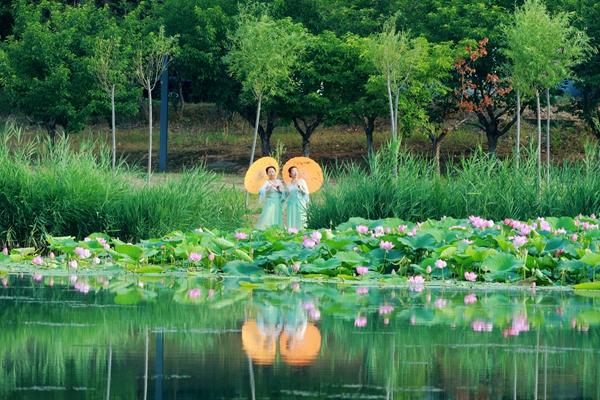 夏日里,山東省鄒平市黛溪水利風(fēng)景區(qū)內(nèi)水草豐茂、荷花映日,盡顯和諧生態(tài)之美,吸引市民們水濱尋芳,爭相感受這份專屬夏日的獨(dú)特景致。(山東省鄒平市紀(jì)委監(jiān)委供 李鈺平 攝)